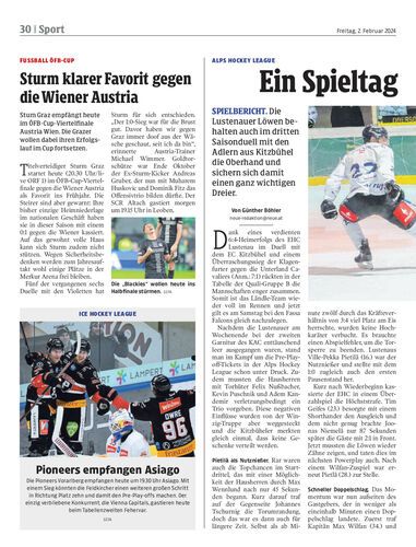 Spielbericht. Die Lustenauer Löwen behalten auch im dritten Saisonduell mit den Adlern aus Kitzbühel die Oberhand und sichern sich damit einen ganz wichtigen Dreier.