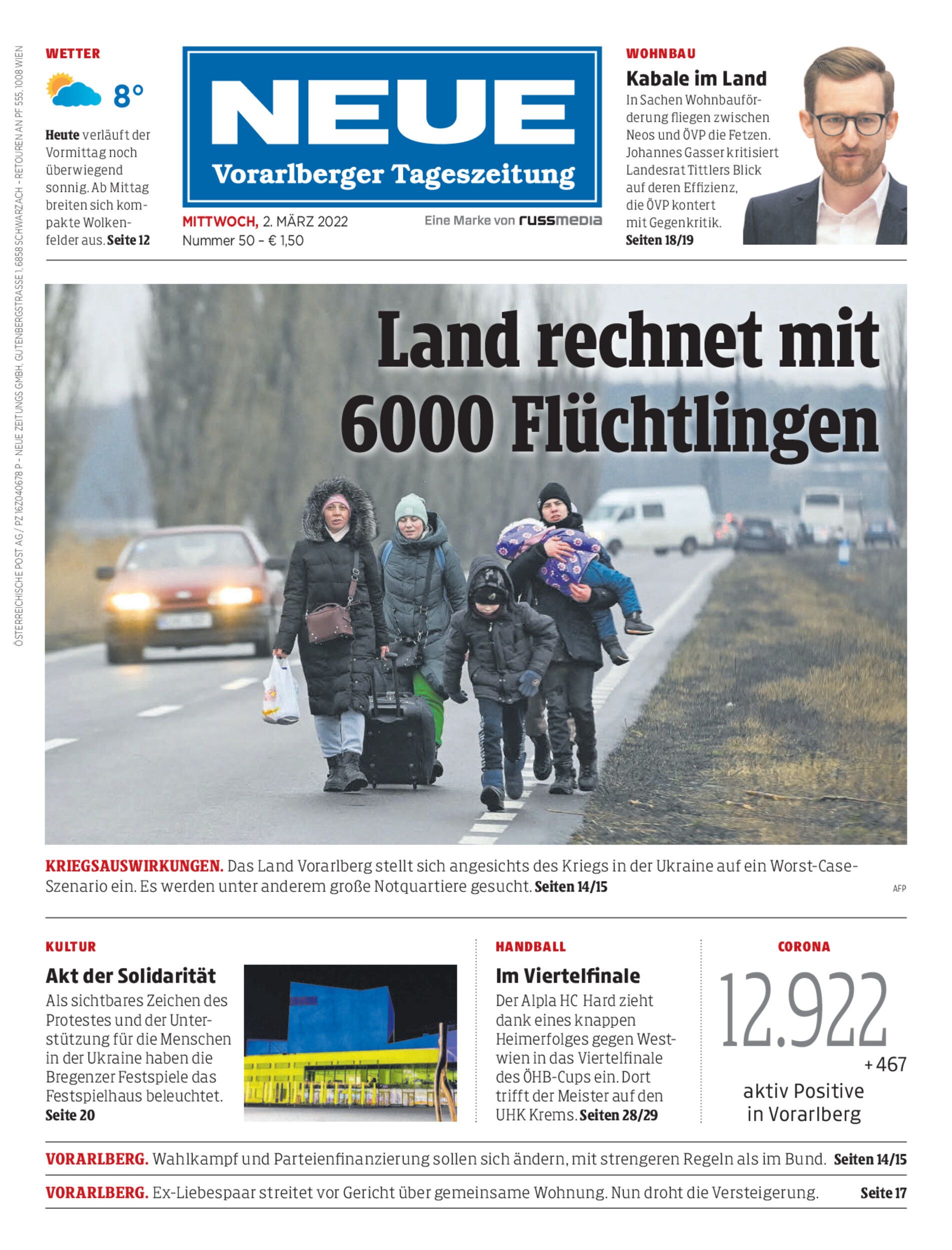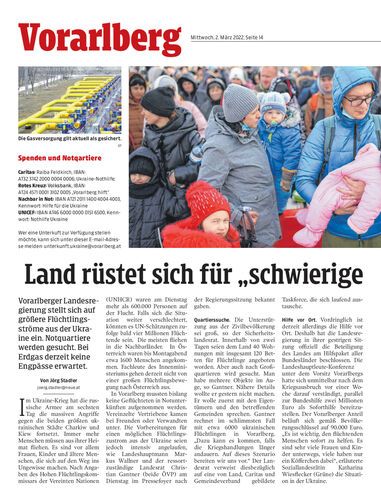 Vorarlberger Landesregierung stellt sich auf größere Flüchtlingsströme aus der Ukraine ein. Notquartiere werden gesucht. Bei Erdgas derzeit keine Engpässe erwartet.
