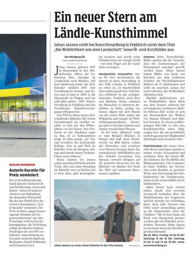 Johan Jansen stellt bei KunstVorarlberg in Feldkirch unter dem Titel „Die Wirklichkeit wie eine Landschaft“ neue Öl- und Acrylbilder aus.