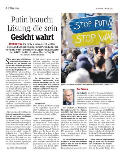 Es helfe einem nicht weiter, Russland Schurkenstaat und Putin Killer zu nennen, warnt der frühere Sonderbeauftragte der OSZE für die Ukraine, Martin Sajdik. Von Manuela Tschida-Swoboda