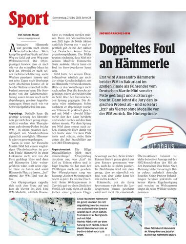 Erst wird Alessandro Hämmerle bei der WM in Bakuriani im großen Finale als Führender vom Deutschen Martin Nörl von der Piste gedrängt und zu Sturz gebracht. Dann lehnt die Jury den logischen Protest ab – und so kehrt „Izzi“ als Vierter ohne Medaille von der WM zurück. Die Hintergründe.