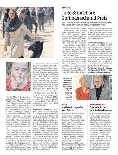 Das Theater Kosmos verleiht Jan Moritz Müller, Irene Diwiak und Felix Kalaivanan den biennal vergebenen Preis.