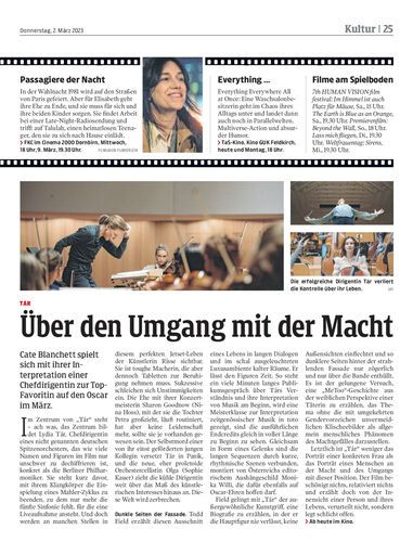 Cate Blanchett spielt sich mit ihrer Interpretation einer Chefdirigentin zur Top-Favoritin auf den Oscar im März.