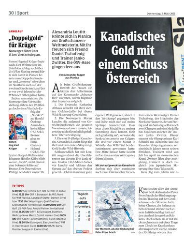 Alexandria Loutitt krönte sich in Planica zur Großschanzen-Weltmeisterin. Mit ihr freuten sich Freund Daniel Tschofenig und Trainer Janko Zwitter. Die ÖSV-Asse gingen leer aus.