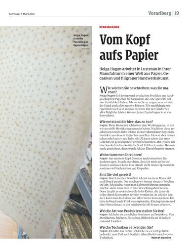 Helga Hagen arbeitet in Lustenau in ihrer Manufaktur in einer Welt aus Papier, Gedanken und filigraner Handwerkskunst.