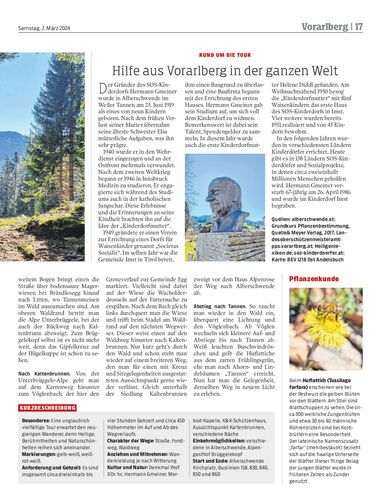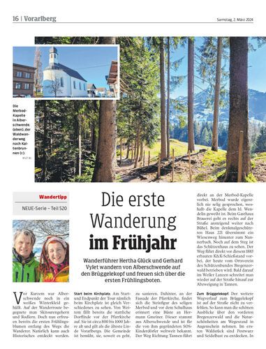 Wanderführer Hertha Glück und Gerhard Vylet wandern von Alberschwende auf den Brüggelekopf und freuen sich über die ersten Frühlingsboten.