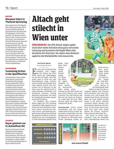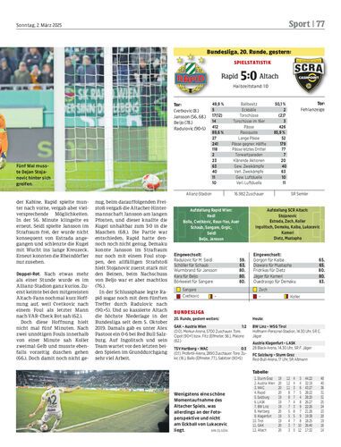 Spielbericht. Der SCR Altach zeigte spielerisch über weite Strecken eine ganz schwache Leistung und kassierte bei Rapid Wien eine deutliche 0:5-Klatsche. Vor allem aber defensiv agierten die Rheindörfler teils desaströs.
