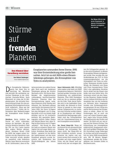 Exoplaneten umrunden ferne Sterne. 1995 war ihre Erstentdeckung eine große Sensation. Jetzt ist es mit Hilfe eines Riesenteleskops gelungen, die Atmosphäre von Tylos zu analysieren.