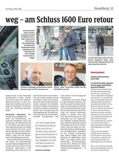Hans Kreuzmayr (70) aus Gaschurn staunte nicht schlecht, als ihm eine Polizeistreife auf dem eigenen Grund zum Alkomattest bat. Nach Verweigerung zog er vor Gericht, wurde aber abgewiesen. Am Schluss zahlte die BH die Strafe zurück – nach eineinhalb Jahren Spießrutenlauf.