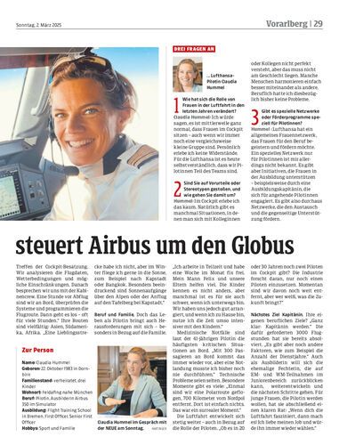 Claudia Hummel fliegt als Pilotin bei der Lufthansa Langstrecken mit dem Großraumflugzeug Airbus 350. Zugleich meistert die 41-Jährige den Spagat zwischen Cockpit und Familie.