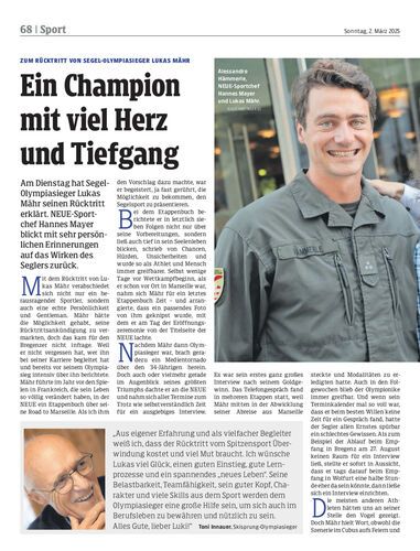 Am Dienstag hat Segel-Olympiasieger Lukas Mähr seinen Rücktritt erklärt. NEUE-Sportchef Hannes Mayer blickt mit sehr persönlichen Erinnerungen auf das Wirken des Seglers zurück.