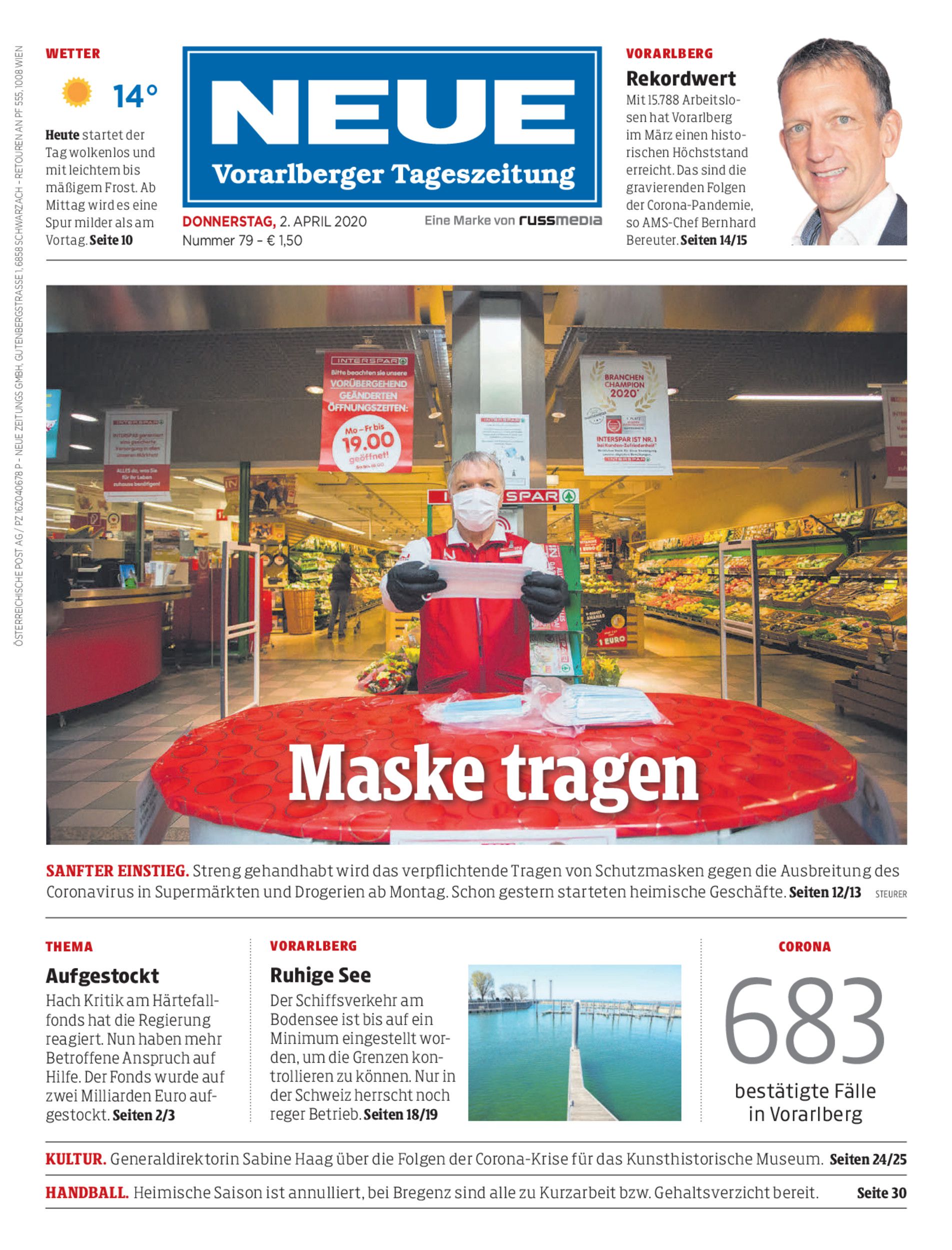 Sanfter Einstieg. Streng gehandhabt wird das verpflichtende Tragen von Schutzmasken gegen die Ausbreitung des Coronavirus in Supermärkten und Drogerien ab Montag. Schon gestern starteten heimische Geschäfte. Seiten 12/13 STEURER