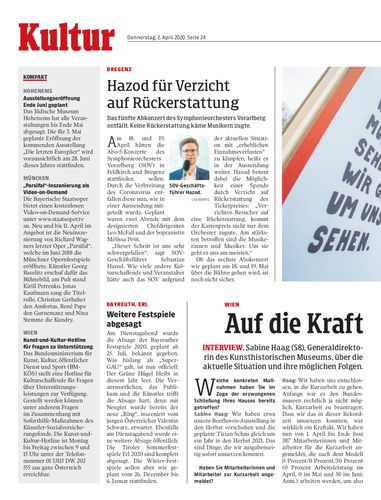 Das fünfte Abkonzert des Symphonieorchesters Vorarlberg entfällt. Keine Rückerstattung käme Musikern zugte.