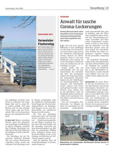 German Bertsch meint, dass Geschäfte sowie Tourismus- und Gastronomiebetriebe nach Ostern geöffnet werden sollten.