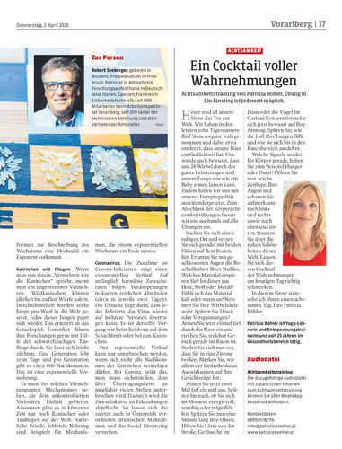 Achtsamkeitstraining von Patrizia Böhler, Übung 10. Ein Einstieg ist jederzeit möglich.