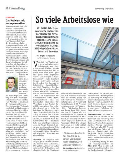 Mit 15.788 Arbeitslosen wurde im März in Vorarlberg ein historischer Höchststand erreicht. Eine Situation, die mit nichts zu vergleichen ist, sagt AMS-Geschäftsführer Bernhard Bereuter.