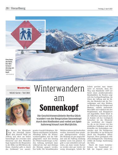 Die Geschichtenerzählerin Hertha Glück wandert von der Bergstation Sonnenkopf durch den Riedboden und vorbei am Spielhahnweg hinauf zum Muttjöchle.