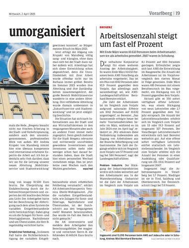 Mit Ende März waren 10.632 Personen beim Arbeitsmarktservice als arbeitslos gemeldet. 2667 waren in Schulung.