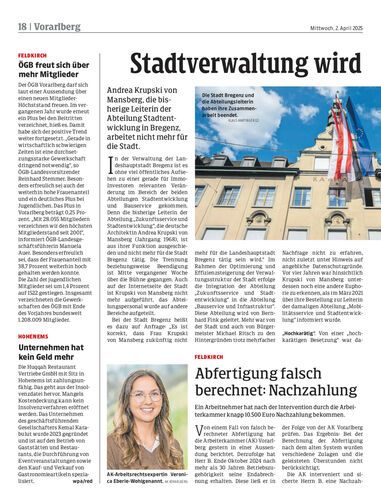 Andrea Krupski von Mansberg, die bisherige Leiterin der Abteilung Stadtentwicklung in Bregenz, arbeitet nicht mehr für die Stadt.
