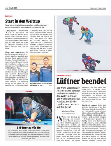 Der Wahl-Vorarlberger Julian Lüftner beendet nach dem anstehenden Weltcup-Finale am Wochenende seine Karriere. Der 32-Jährige konzentriert sich auf den Beruf.