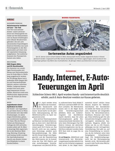 Schlechter Scherz: Mit 1. April wurden Handy- und Internettarife deutlich erhöht, auch E-Auto-Besitzer werden zur Kasse gebeten.