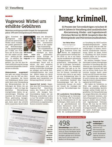 61 Prozent der Tatverdächtigen zwischen 10 und 14 Jahren in Vorarlberg sind ausländischer Abstammung. Kinder- und Jugendanwalt Christian Netzer im NEUE-Gespräch über die Hintergründe und Präventionsmaßnahmen.