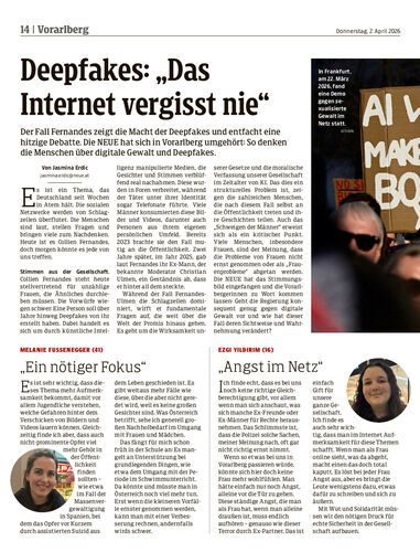 Der Fall Fernandes zeigt die Macht der Deepfakes und entfacht eine hitzige Debatte. Die NEUE hat sich in Vorarlberg umgehört: So denken die Menschen über digitale Gewalt und Deepfakes.