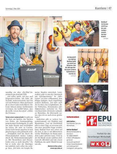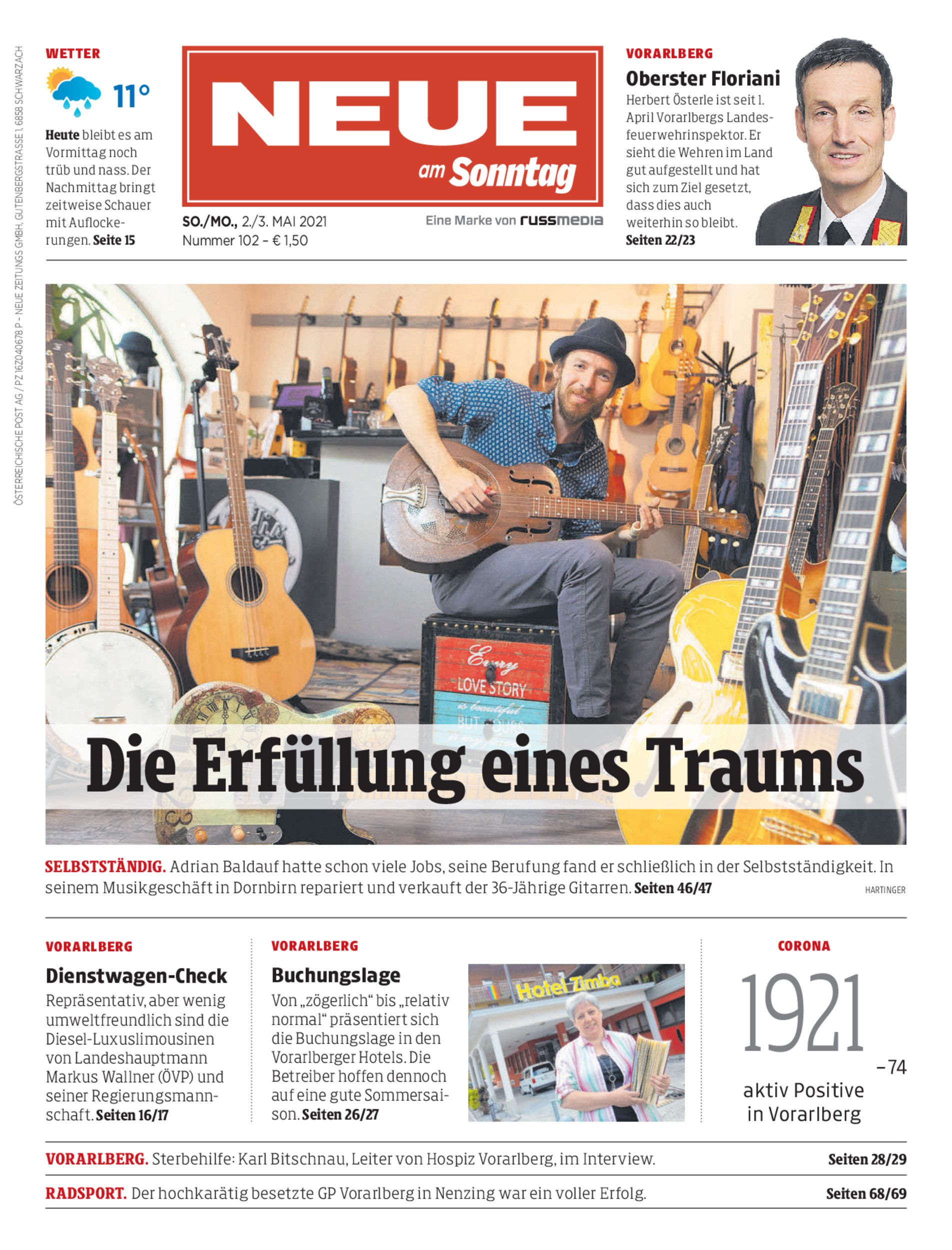 Selbstständig. Adrian Baldauf hatte schon viele Jobs, seine Berufung fand er schließlich in der Selbstständigkeit. In seinem Musikgeschäft in Dornbirn repariert und verkauft der 36-Jährige Gitarren. Seiten 46/47 Hartinger
