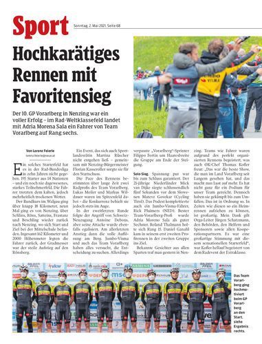 Der 10. GP Vorarlberg in Nenzing war ein voller Erfolg – im Rad-Weltklassefeld landet mit Adria Morena Sala ein Fahrer von Team Vorarlberg auf Rang sechs.