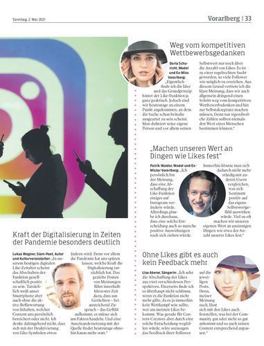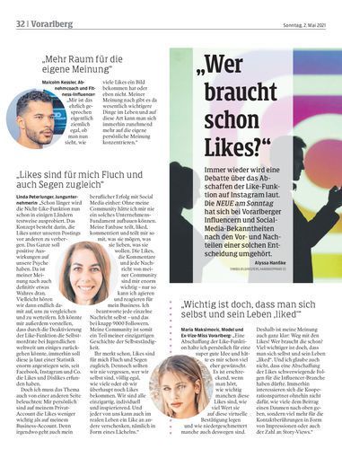 Immer wieder wird eine Debatte über das Abschaffen der Like-Funktion auf Instagram laut. Die NEUE am Sonntag hat sich bei Vorarlberger Influencern und Social-Media-Bekanntheiten nach den Vor- und Nachteilen einer solchen Entscheidung umgehört. Alyssa Hanßke