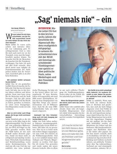 Interview. Mario Leiter (55) hat in den letzten sechs Jahren die Geschicke der Alpenstadt Bludenz maßgeblich mitgeprägt. In seinem Abschiedsinterview mit der NEUE am Sonntag als scheidender Vizebürgermeister spricht er über politische Fouls, seine Niederlagen und den Traumjob Politiker.