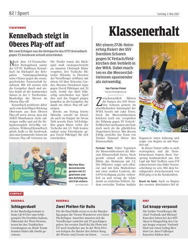 Mit zwei Erfolgen war die Heimpartie des UTTC Kennelbach gegen TS Innsbruck schnell entschieden.