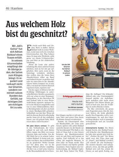 Mit „Adi’s Guitar“ hat sich Adrian Baldauf einen Traum erfüllt. In seinem Gitarrenladen empfängt der 36-Jährige jeden, der Saiten zum Klingen bringt. Er repariert und verkauft nicht nur Gitarren, sondern vermittelt seinen Kunden das Gefühl, zur richtigen Zeit am richtigen Ort zu sein.