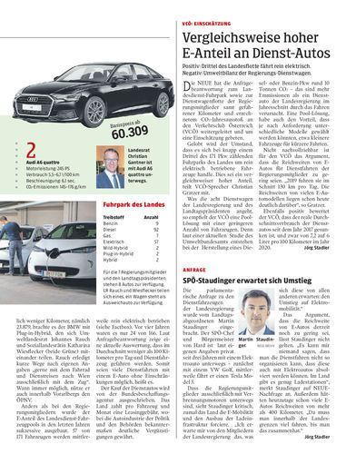 Positiv: Drittel des Landesflotte fährt rein elektrisch. Negativ: Umweltbilanz der Regierungs-Dienstwagen.