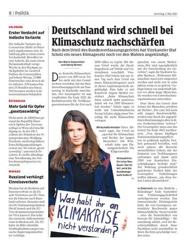 Nach dem Urteil des Bundesverfassungsgerichts hat Vizekanzler Olaf Scholz ein neues Klimagesetz noch vor den Wahlen angekündigt,