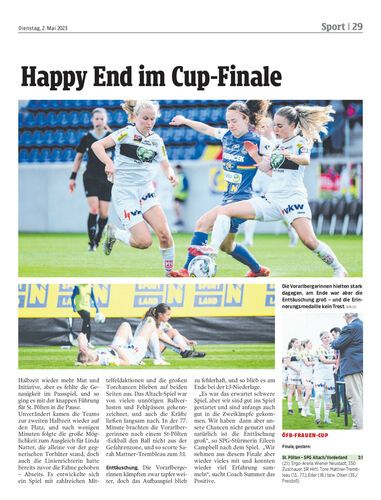 Als erstes Vorarlberger Frauenteam standen die Damen der Spielgemeinschaft Altach/Vorderland im Finale des Österreichischen Frauen-Cups. Dort mussten sie sich gestern in Wiener Neustadt Favorit St. Pölten mit 1:3 geschlagen geben.