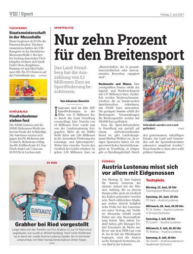 Das Land Vorarlberg hat die Auszahlung von 5,1 Millionen Euro an Sportförderung beschlossen.