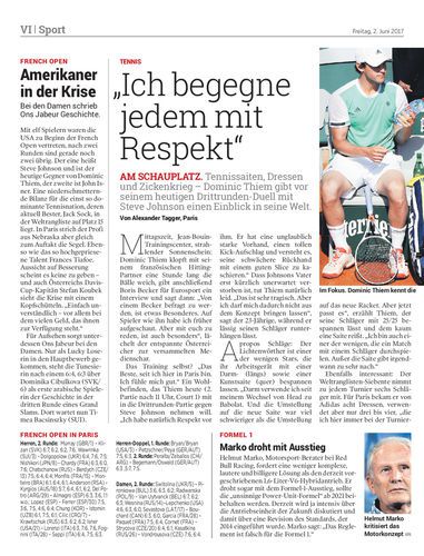 am schauplatz. Tennissaiten, Dressen und Zickenkrieg – Dominic Thiem gibt vor seinem heutigen Drittrunden-Duell mit Steve Johnson einen Einblick in seine Welt. Von Alexander Tagger, Paris
