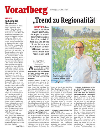 Interview. Landesrat Johannes Rauch über Veränderungen im Mobilitätsverhalten in der Post-Corona-Zeit, E- Mobilität und öffentlichen Verkehr, und warum es in Zukunft 50 Prozent weniger Dienstreisen nach Wien geben wird.