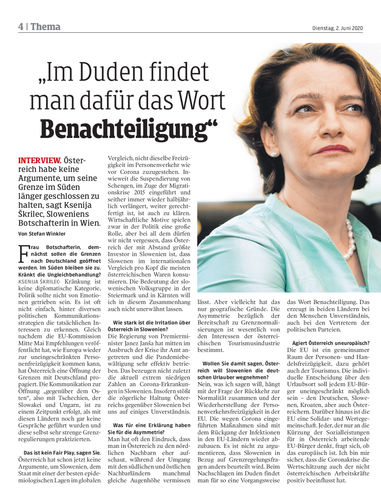 Österreich habe keine Argumente, um seine Grenze im Süden länger geschlossen zu halten, sagt Ksenija Škrilec, Sloweniens Botschafterin in Wien. Von Stefan Winkler