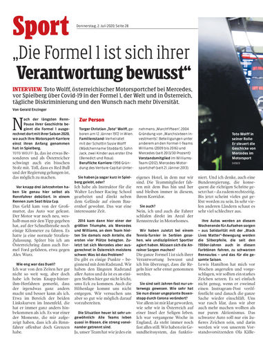 Toto Wolff, österreichischer Motorsportchef bei Mercedes, vor Spielberg über Covid-19 in der Formel 1, der Welt und in Österreich, tägliche Diskriminierung und den Wunsch nach mehr Diversität. Von Gerald Enzinger