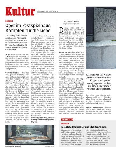 Am Montag findet im Festspielhaus ein „Werkstattgespräch“ zu „Sibirien“ mit Vasily Barkhatov, Valentin Uryupin, Clarry Bartha, Elisabeth Sobotka und Olaf A. Schmitt statt.
