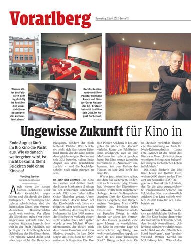 Ende August läuft im Rio Kino die Pacht aus. Wie es danach weitergehen wird, ist nicht bekannt. Steht Feldkirch bald ohne Kino da?