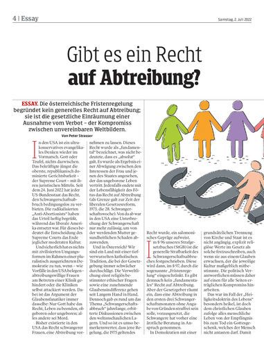 ESSAY. Die österreichische Fristenregelung begründet kein generelles Recht auf Abtreibung; sie ist die gesetzliche Einräumung einer Ausnahme vom Verbot – der Kompromiss zwischen unvereinbaren Weltbildern. Von Peter Strasser