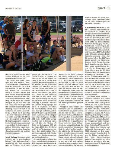 Die VLV-Meisterschaften in Lustenau wurden großteils von Mehrkämpfern dominiert, so sammelten Chiara-Belinda Schuler oder Laura Hehle Titel um Titel. Für Hürden-Ass Zsombor Klucsik geht es zum EYOF, während Angelina Rupp erneut das U23-EM-Ticket verpasste und einen Schlussstrich zieht. Isabel Posch und Anna Mager mit Österreich Siebte bei Team-EM.
