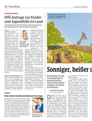 Landtagsabgeordnete Nicole Hosp möchte Auskunft über Personalsituation der Einrichtungen in Vorarlberg.