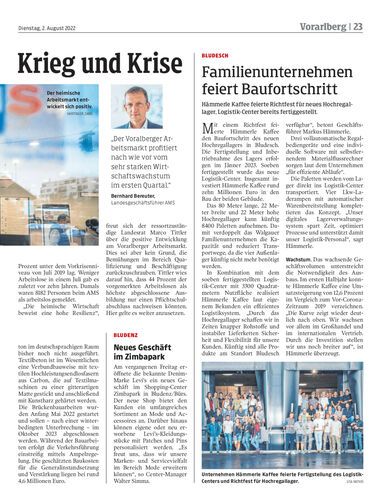 Hämmerle Kaffee feierte Richtfest für neues Hochregallager, Logistik-Center bereits fertiggestellt.