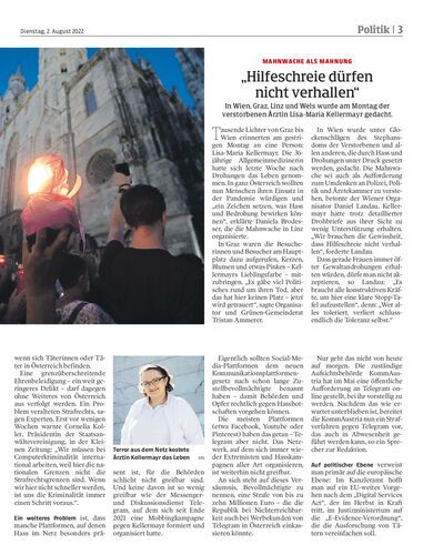 In Wien, Graz, Linz und Wels wurde am Montag der verstorbenen Ärztin Lisa-Maria Kellermayr gedacht.