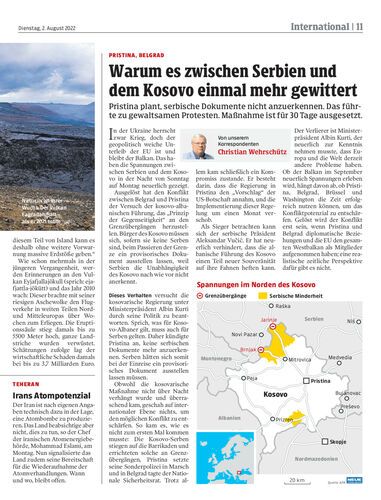 Pristina plant, serbische Dokumente nicht anzuerkennen. Das führte zu gewaltsamen Protesten. Maßnahme ist für 30 Tage ausgesetzt.