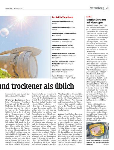 Wetterbilanz im Juli: Vorarlberg liegt im österreichweiten Trend und bei Abweichungen vom Mittel an der Spitze.